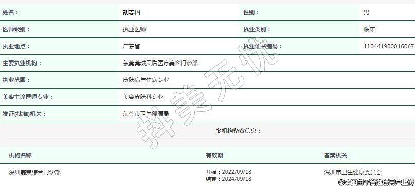 主要執(zhí)業(yè)機構:東莞莞城天后醫(yī)療美容門診部