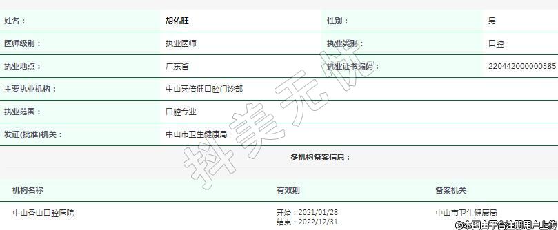 主要執(zhí)業(yè)機(jī)構(gòu):中山牙倍健口腔門診部
