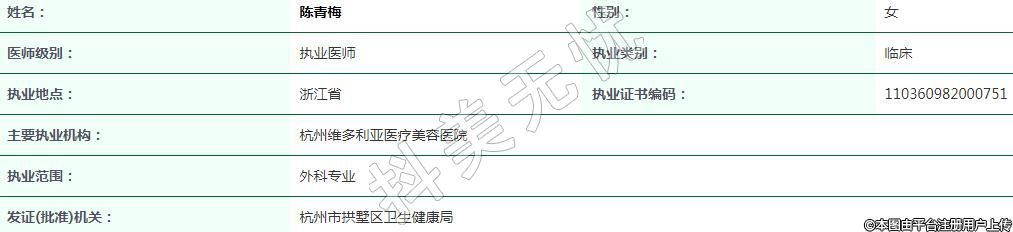 杭州維多利亞醫(yī)療美容執(zhí)業(yè)醫(yī)師