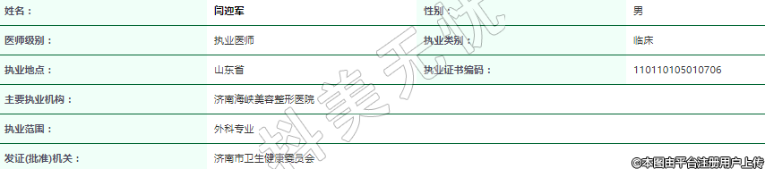 主要執(zhí)業(yè)機構(gòu):濟南海峽美容整形醫(yī)院