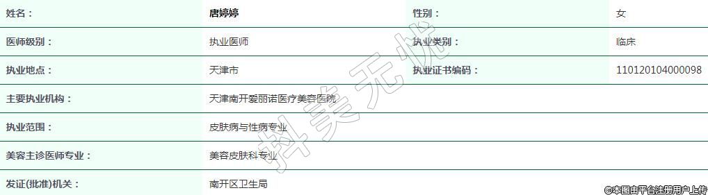 主要執(zhí)業(yè)機(jī)構(gòu):天津南開愛麗諾醫(yī)療美容醫(yī)院