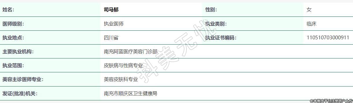 主要執(zhí)業(yè)機(jī)構(gòu):南充阿藍(lán)醫(yī)療美容門診部