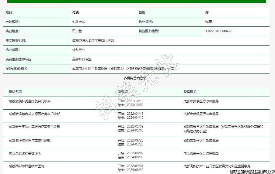 主要執(zhí)業(yè)機構(gòu):成都恒博天姿醫(yī)療美容門診部