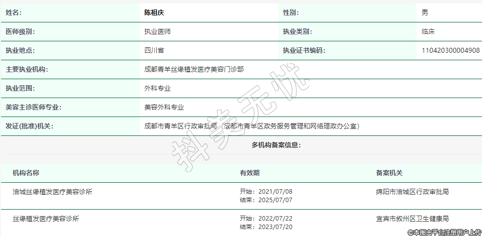 主要執(zhí)業(yè)機(jī)構(gòu):成都青羊絲緣植發(fā)醫(yī)療美容門診部
