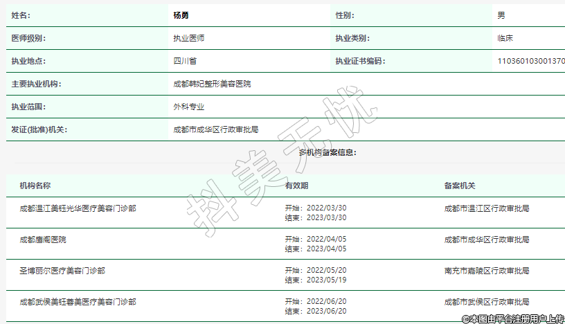 主要執(zhí)業(yè)機構(gòu):成都韓妃整形美容醫(yī)院
