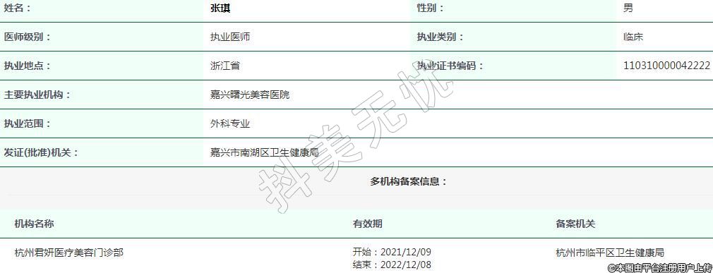 主要執(zhí)業(yè)機(jī)構(gòu):嘉興曙光美容醫(yī)院