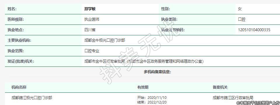 主要執(zhí)業(yè)機構(gòu):成都金牛極光口腔門診部