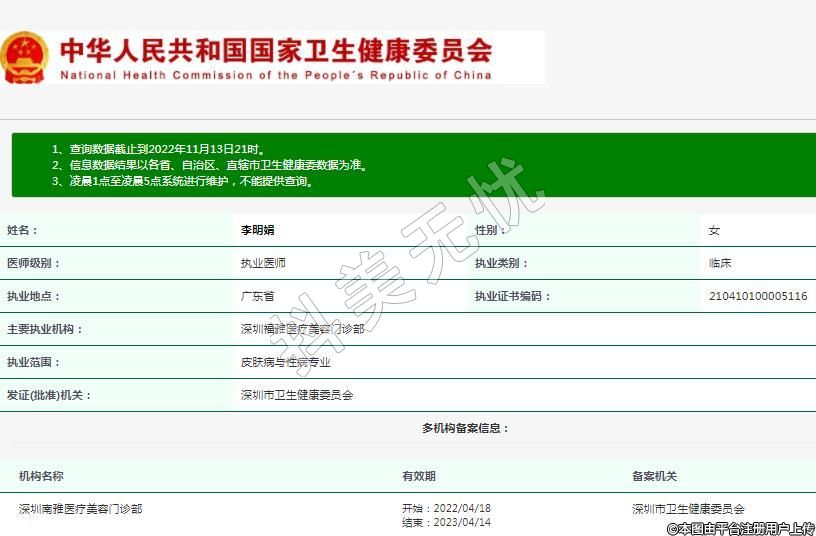 主要執(zhí)業(yè)機(jī)構(gòu):深圳福雅醫(yī)療美容門(mén)診部