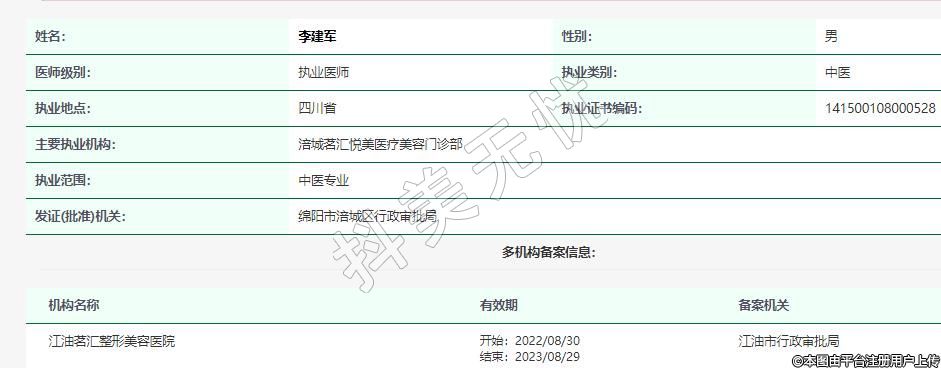 主要執(zhí)業(yè)機(jī)構(gòu):涪城茗匯悅美醫(yī)療美容門診部