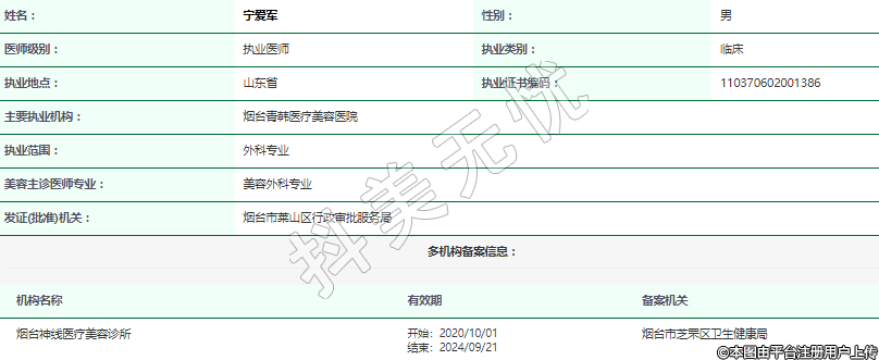 主要執(zhí)業(yè)機(jī)構(gòu):煙臺(tái)青韓醫(yī)療美容醫(yī)院