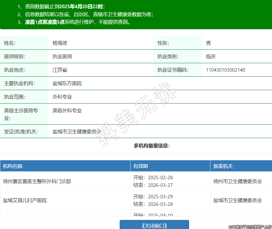 揚(yáng)州景區(qū)雷醫(yī)生整形外科門(mén)診部