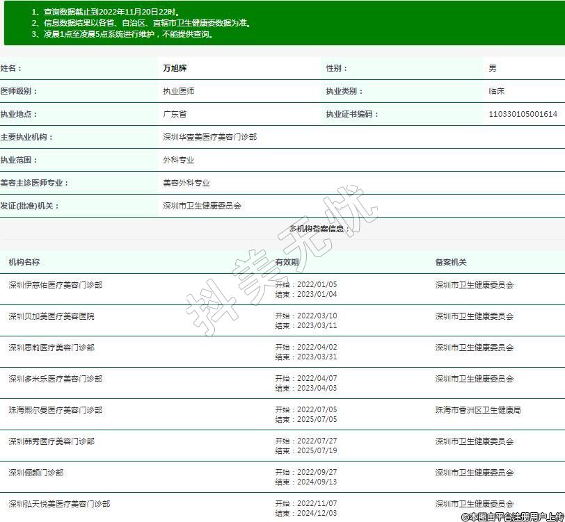 主要執(zhí)業(yè)機構(gòu):深圳華壹美醫(yī)療美容門診部