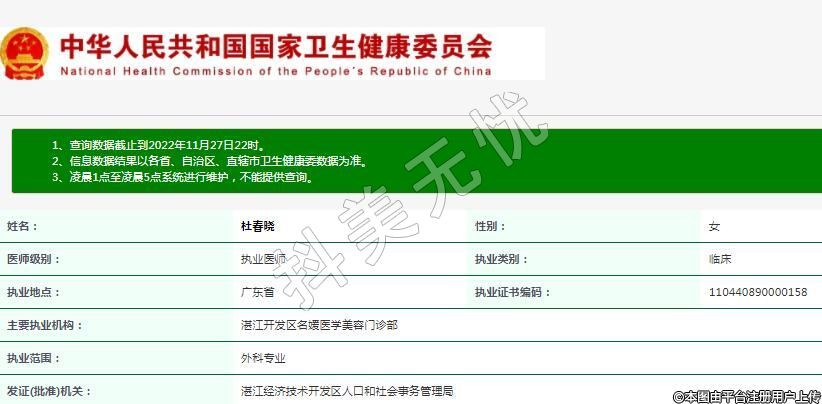 主要執(zhí)業(yè)機構(gòu):湛江開發(fā)區(qū)名媛醫(yī)學(xué)美容門診部