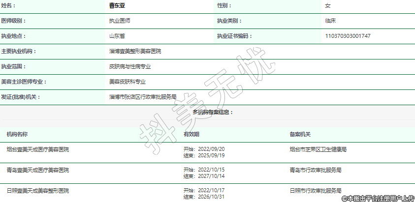 主要執(zhí)業(yè)機(jī)構(gòu):淄博壹美整形美容醫(yī)院
