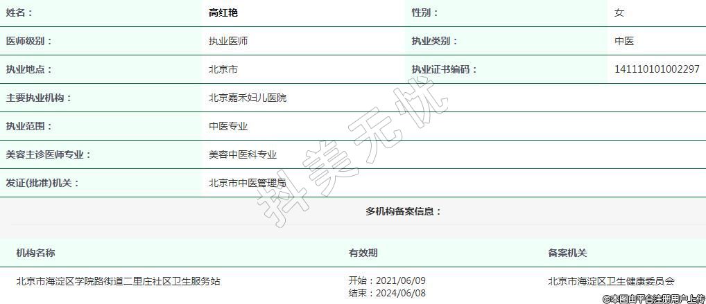 北京嘉禾婦兒醫(yī)療美容執(zhí)業(yè)醫(yī)師