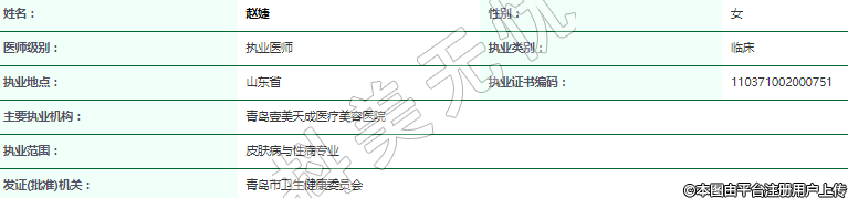 主要執(zhí)業(yè)機(jī)構(gòu):青島壹美天成醫(yī)療美容醫(yī)院