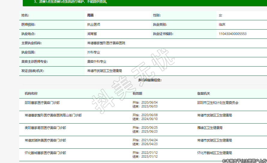 主要執(zhí)業(yè)機構:常德曹家整形醫(yī)療美容醫(yī)院