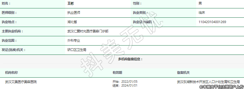 主要執(zhí)業(yè)機(jī)構(gòu):武漢仁愛時(shí)光醫(yī)療美容門診部