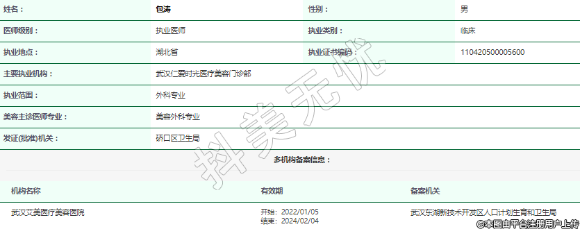 主要執(zhí)業(yè)機(jī)構(gòu):武漢仁愛時(shí)光醫(yī)療美容門診部
