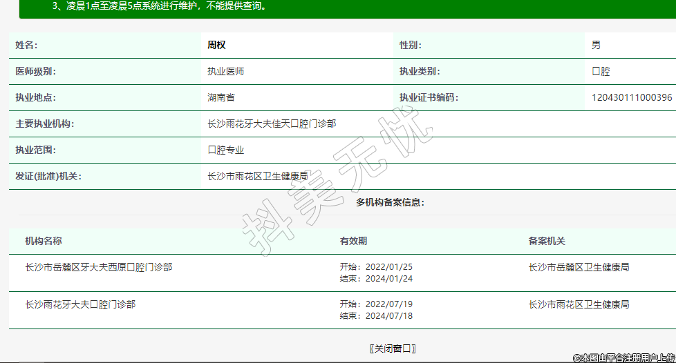 主要執(zhí)業(yè)機(jī)構(gòu):長(zhǎng)沙雨花牙大夫佳天口腔門(mén)診部