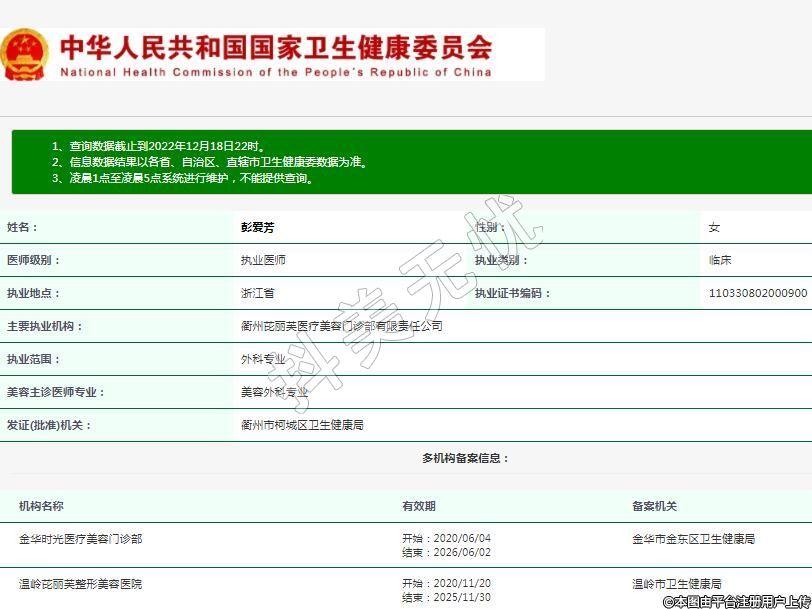 主要執(zhí)業(yè)機構:衢州芘麗芙醫(yī)療美容門診部有限責任公司
