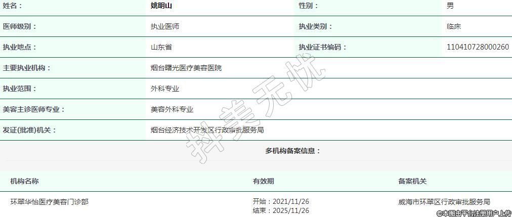 主要執(zhí)業(yè)機構(gòu):煙臺曙光醫(yī)療美容醫(yī)院
