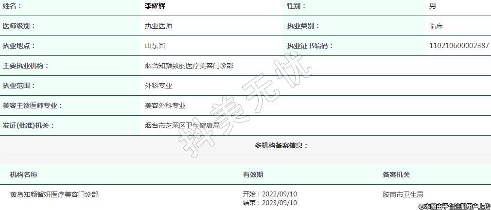 主要執(zhí)業(yè)機構(gòu):煙臺知顏致麗醫(yī)療美容門診部