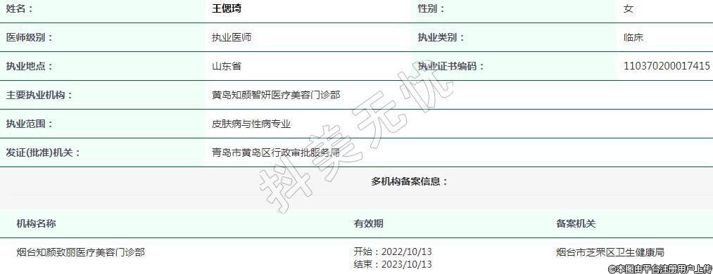 主要執(zhí)業(yè)機構(gòu):黃島知顏智妍醫(yī)療美容門診部