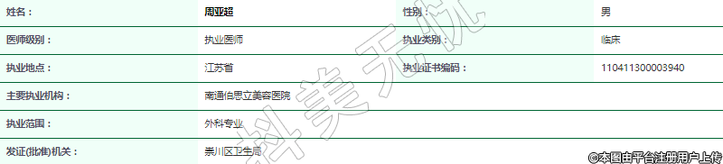 主要執(zhí)業(yè)機(jī)構(gòu):南通伯思立美容醫(yī)院
