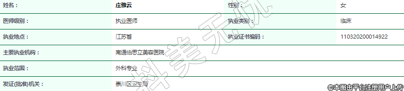 主要執(zhí)業(yè)機構(gòu):南通伯思立美容醫(yī)院