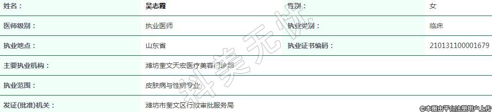 濰坊天宏醫(yī)療美容執(zhí)業(yè)醫(yī)師