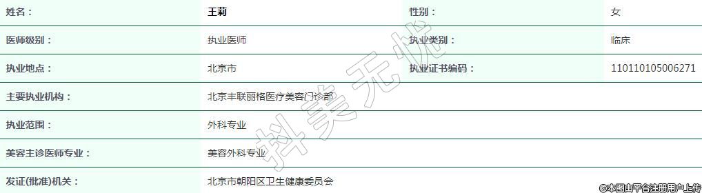 主要執(zhí)業(yè)機(jī)構(gòu):北京豐聯(lián)麗格醫(yī)療美容門診部
