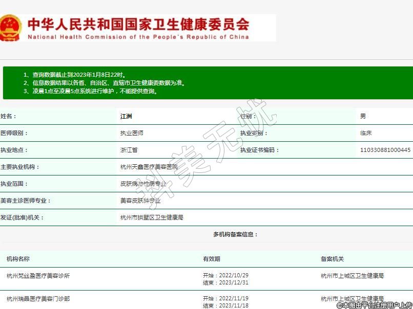 主要執(zhí)業(yè)機構(gòu):杭州天鑫醫(yī)療美容醫(yī)院