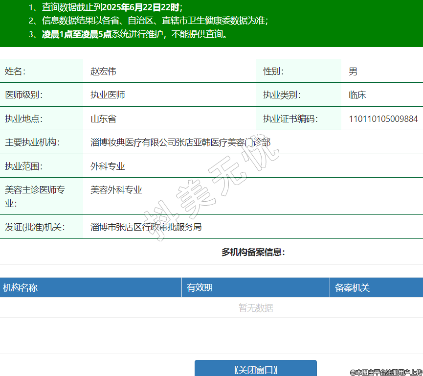 姓名:趙宏偉性別:男醫(yī)師級別:執(zhí)業(yè)醫(yī)師執(zhí)業(yè)類別:臨床執(zhí)業(yè)地點:山東省執(zhí)業(yè)證書編碼:110110105009884主要執(zhí)業(yè)機構:淄博妝典醫(yī)療有限公司張店亞韓醫(yī)療美容門診部執(zhí)業(yè)范圍:外科專業(yè)美容主診醫(yī)師專業(yè):美容外科專業(yè)發(fā)證(批準)機關:淄博市張店區(qū)行政審批服務局 -