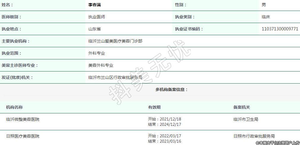 主要執(zhí)業(yè)機構(gòu):臨沂蘭山愛美醫(yī)療美容門診部