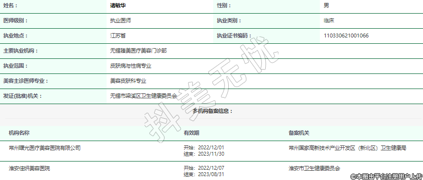 主要執(zhí)業(yè)機(jī)構(gòu):無(wú)錫臻美醫(yī)療美容門(mén)診部