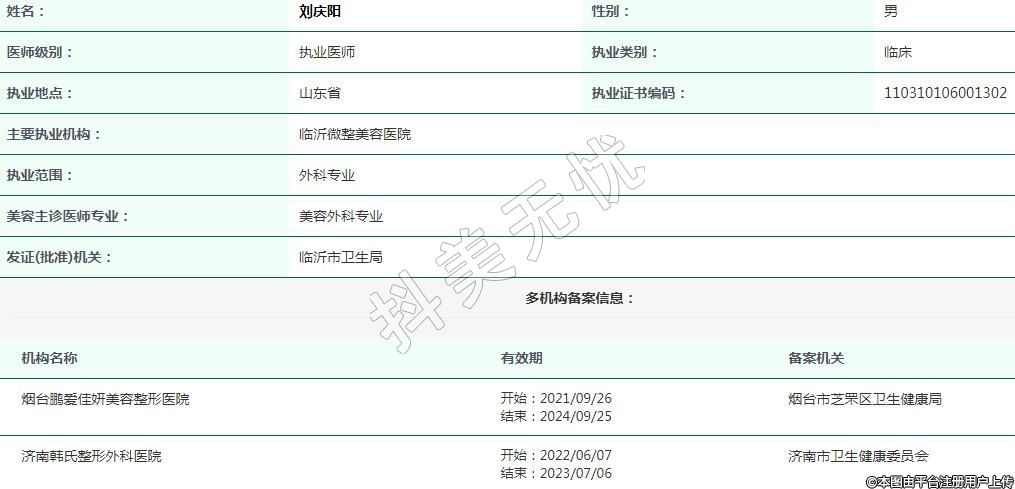 主要執(zhí)業(yè)機構(gòu):臨沂微整美容醫(yī)院