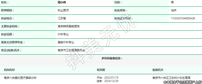 主要執(zhí)業(yè)機構(gòu):南京韓辰美容醫(yī)院