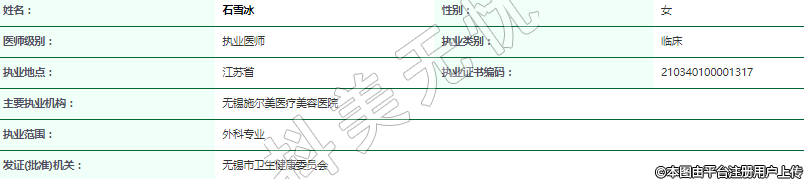 主要執(zhí)業(yè)機(jī)構(gòu):無(wú)錫施爾美醫(yī)療美容醫(yī)院
