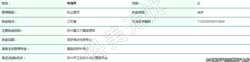 主要執(zhí)業(yè)機構(gòu):蘇州美貝爾美容醫(yī)院