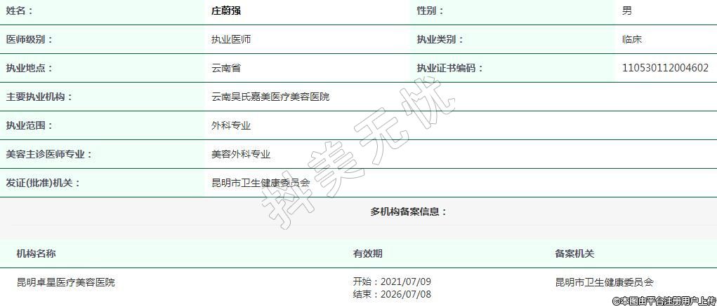 主要執(zhí)業(yè)機(jī)構(gòu):云南吳氏嘉美醫(yī)療美容醫(yī)院