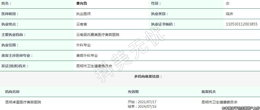 昆明吳氏嘉美執(zhí)業(yè)醫(yī)生