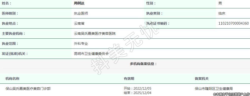 昆明吳氏嘉美執(zhí)業(yè)醫(yī)生