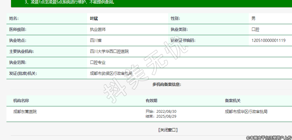 主要執(zhí)業(yè)機構:四川大學華西口腔醫(yī)院