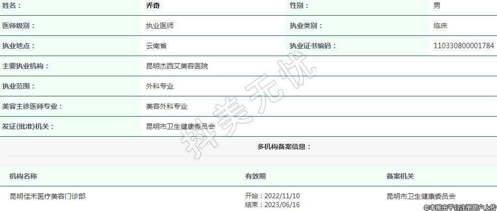 主要執(zhí)業(yè)機(jī)構(gòu):昆明杰西艾美容醫(yī)院