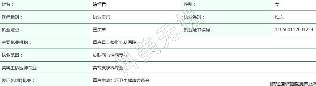 重慶星榮醫(yī)療美容執(zhí)業(yè)醫(yī)師