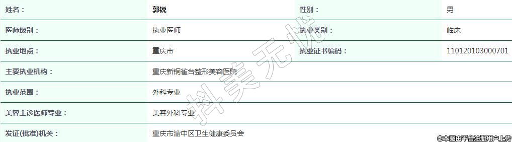 重慶新銅雀臺(tái)醫(yī)療美容執(zhí)業(yè)醫(yī)師