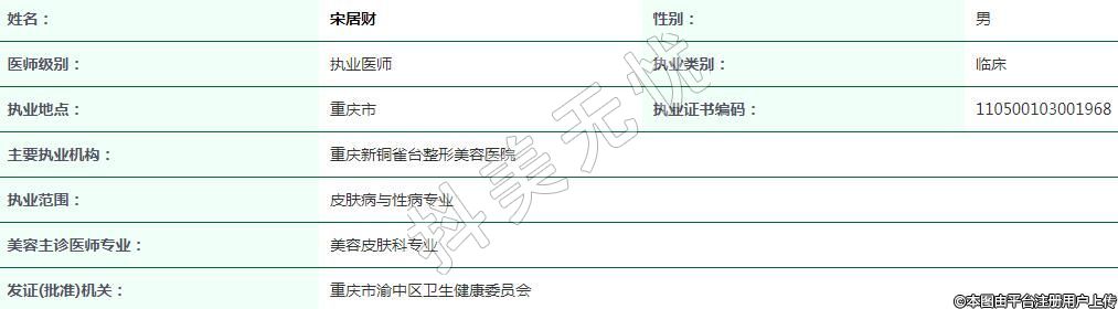重慶新銅雀臺醫(yī)療美容執(zhí)業(yè)醫(yī)師
