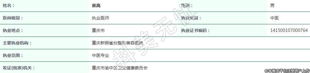 重慶新銅雀臺醫(yī)療美容執(zhí)業(yè)醫(yī)師
