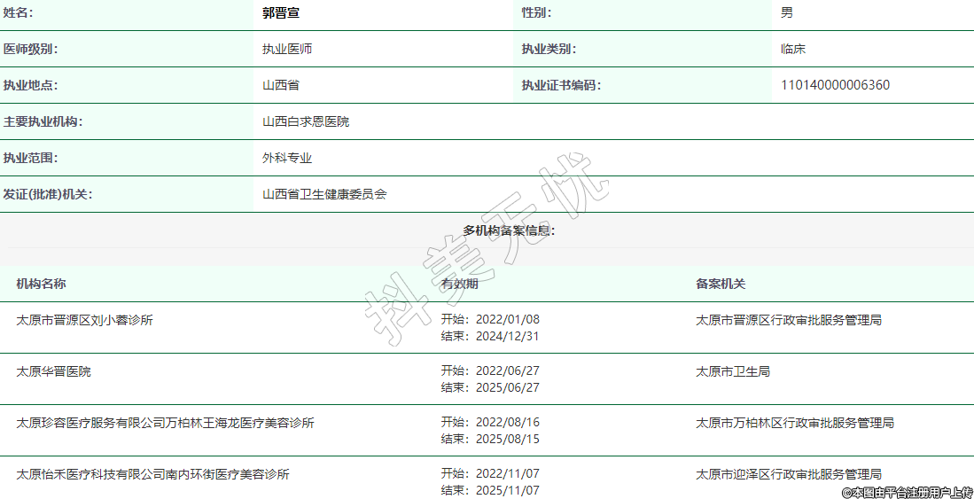 太原珍容醫(yī)療服務有限公司萬柏林王海龍醫(yī)療美容診所